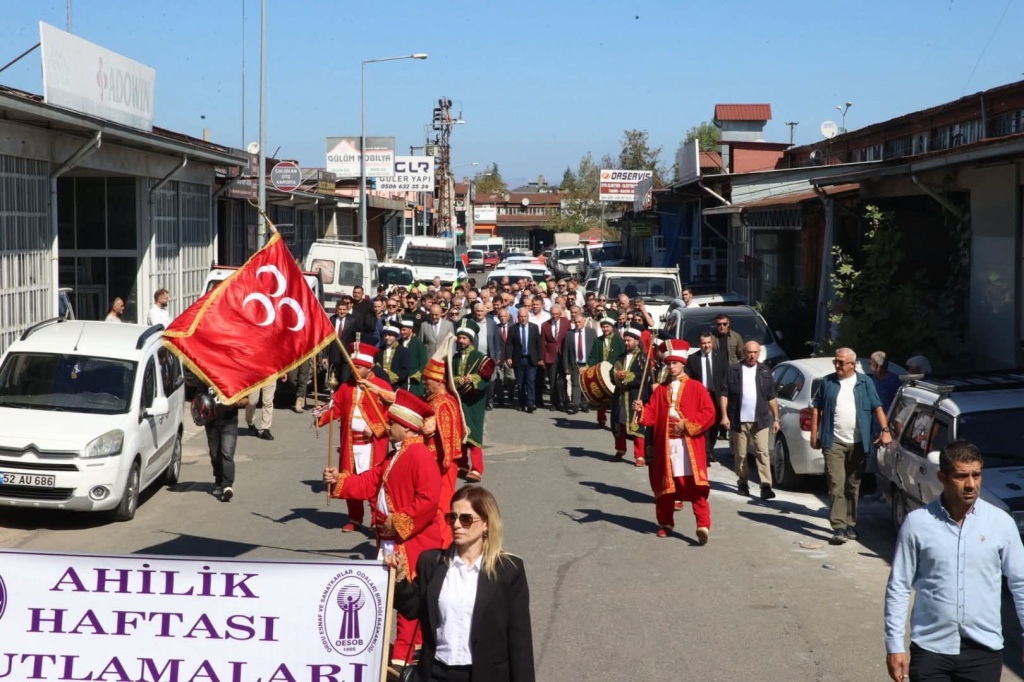 İlimizde kutlamaların 18’incisini düzenlendiği Ahilik Haftası kutlamaları etkinliğinde, Vali Muammer Erol, Ordu Büyükşehir Belediye Başkanı Dr. Mehmet Hilmi Güler, protokol üyeleri ve esnaf temsilcilerinin katılımıyla, Ordu Büyükşehir Belediyesi Mehteran Takımı eşliğinde Altınordu ilçesi Karapınar mahallesi 2. Sanayi Sitesinde bulunan Almina Düğün Salonu önünden başlayan ve Altınordu Mesleki Eğitim Merkezi bahçesinde son bulan “Ahilik Yürüyüşü” yapıldı.
