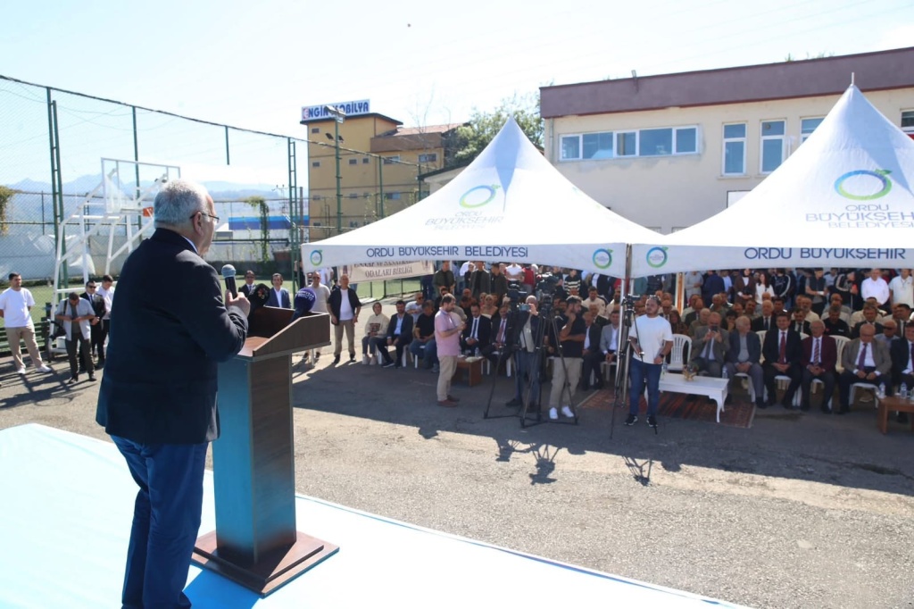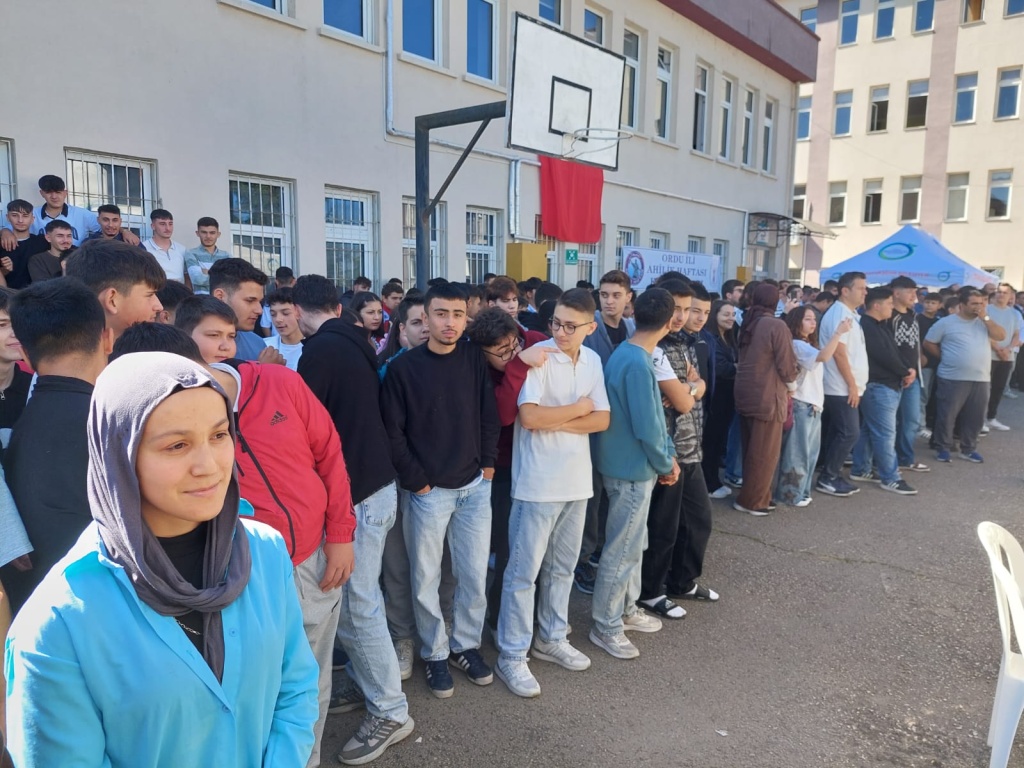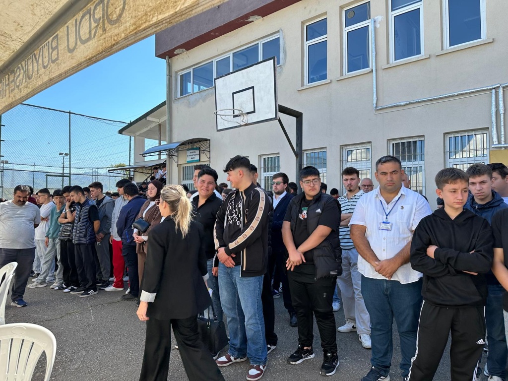 Altınordu Mesleki Eğitim Merkezinin bahçesinde düzenlenen program, saygı duruşu ve İstiklal Marşı’nın okunması ile başladı.